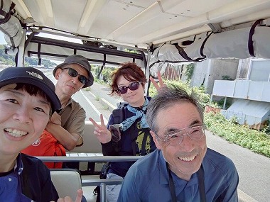 ちょうど観光用のオープンタクシー?のおじさんが声をかけてくれて、登山口まで行ってもらうことにしました。帰りもフェリーに間に合う時間に迎えに来てもらうことにしました。 |