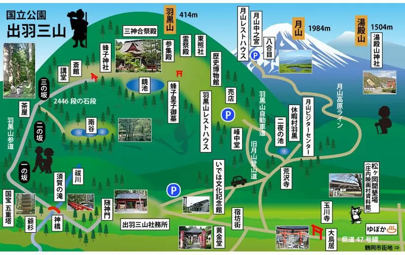 出羽三山とは、羽黒山、月山、湯殿山です |