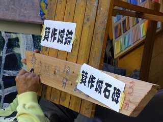| アメリカ人のAさんも、漢字で案内板の文字を作成中。Good! |