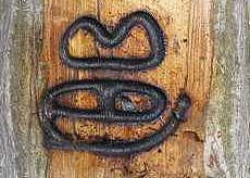 案内板の杭には、趣邑のロゴの焼印がしてあります。しかもこの焼印は手作りです。 |