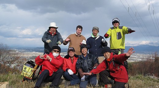 | 先月から参加してくれているアメリカ人には話すより箕作山を見てもらうのが一番。 |
