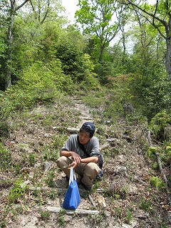 【内容】前回、子供会といっしょに箕作山に登ってみてもう少し整備が必要な箇所があり、今回はその箇所にトラロープと階段を設置しました。
